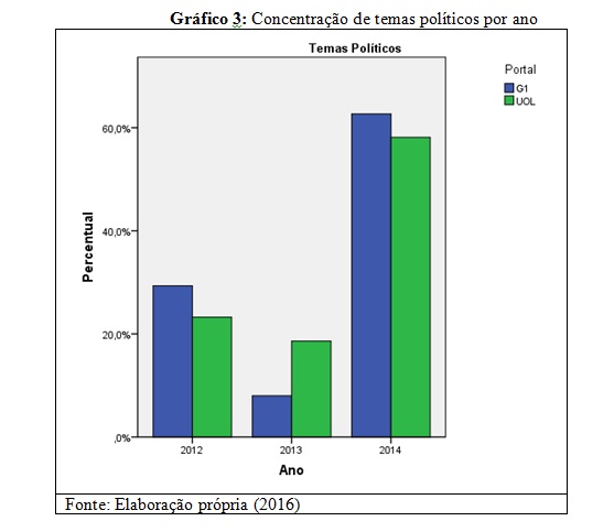 - Gráfico 3 – Concentração de temas políticos por ano