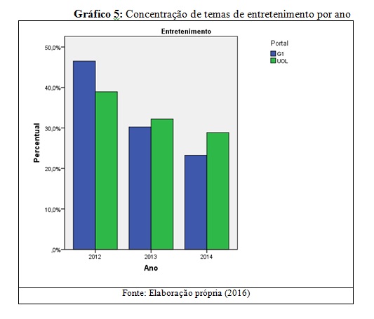 - Gráfico 5 – Concentração de temas de entretenimento por ano